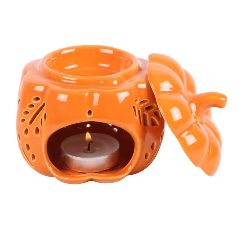 Crafted with cut-out leaf detailing, this ceramic burner casts a warm, glowing effect once lit, filling your space with both fragrance and ambience. The classic pumpkin design makes it a perfect decorative accent for autumn, Halloween, or year-round cosy décor.