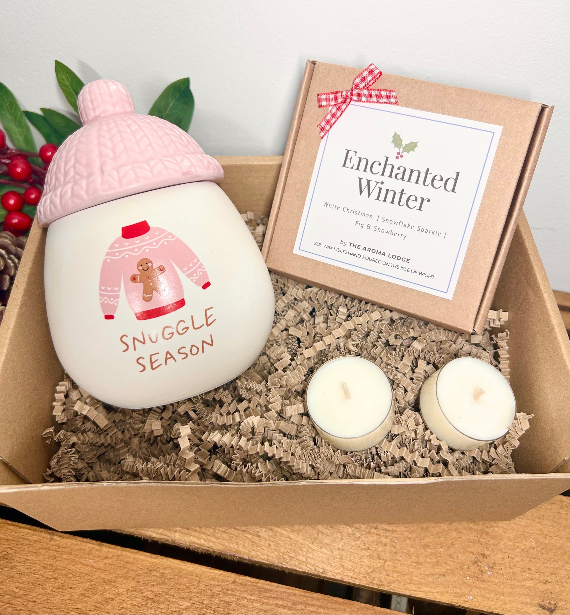 Create the cosiest winter atmosphere with our Snuggle Season Gift Bundle, beautifully packaged in a rustic kraft gift box and ready to give.