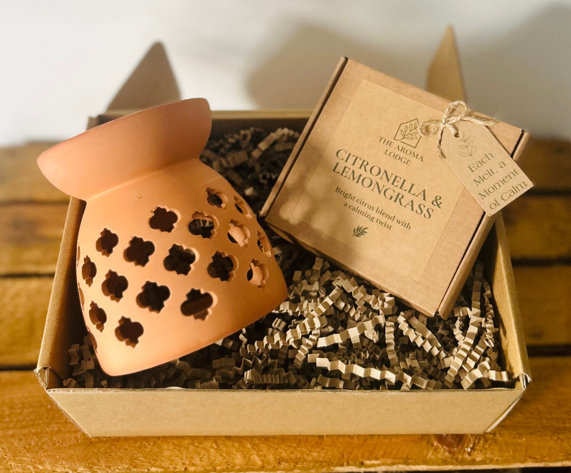 - Terracotta Oil Burner (choice of Geometric or Quatrefoil design, 11 × 9 cm)